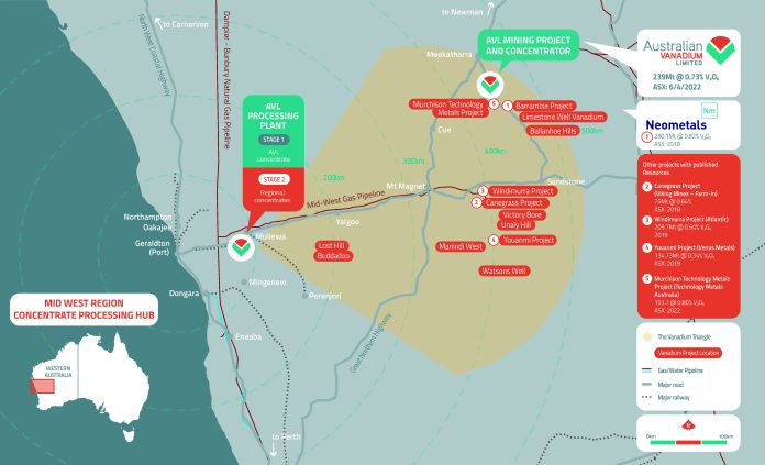 “The Australian Vanadium Project and Barrambie Project are the most well understood and advanced vanadium titanium deposits in Australia. This collaboration will provide synergies, allowing the two projects to move forward even more confidently, using mutual understanding of the ores and processing. The Vanadium Triangle in the Midwest contains many remnants of the once massive Murchison Layered Intrusive Complex, a Bushveld Complex-sized intrusion which hosts a number of potentially economic vanadium titanium magnetite (VTM) deposits. Being able to process our own concentrates and also offer processing infrastructure to other projects, will bring great benefit to the region and Australia as a whole and establish Australia as a cornerstone producer of vanadium products for green steel and energy storage applications. AVL welcomes discussions with other companies in the region that see benefit in the hub approach that AVL and Neometals are considering,” Managing Director Vincent Algar said.