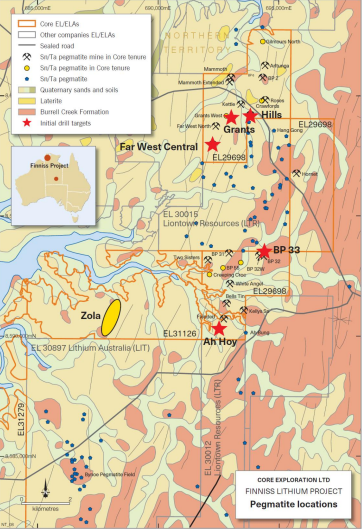 Core Exploration has received all statutory approvals and has appointed a drilling contractor in preparation for its upcoming drilling program at the Company’s Finniss Lithium Project located in the Northern Territory.