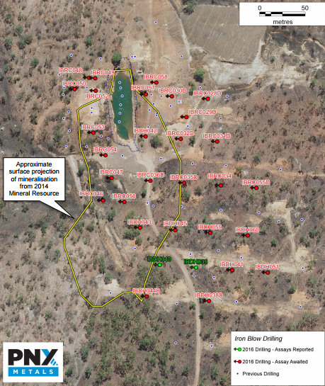 “The success of this drilling will allow the Iron Blow Mineral Resource to be updated in the coming months, which, along with the updated resource to be completed shortly at Mt Bonnie, will allow for completion of the Hayes Creek PFS by mid-2017.”
