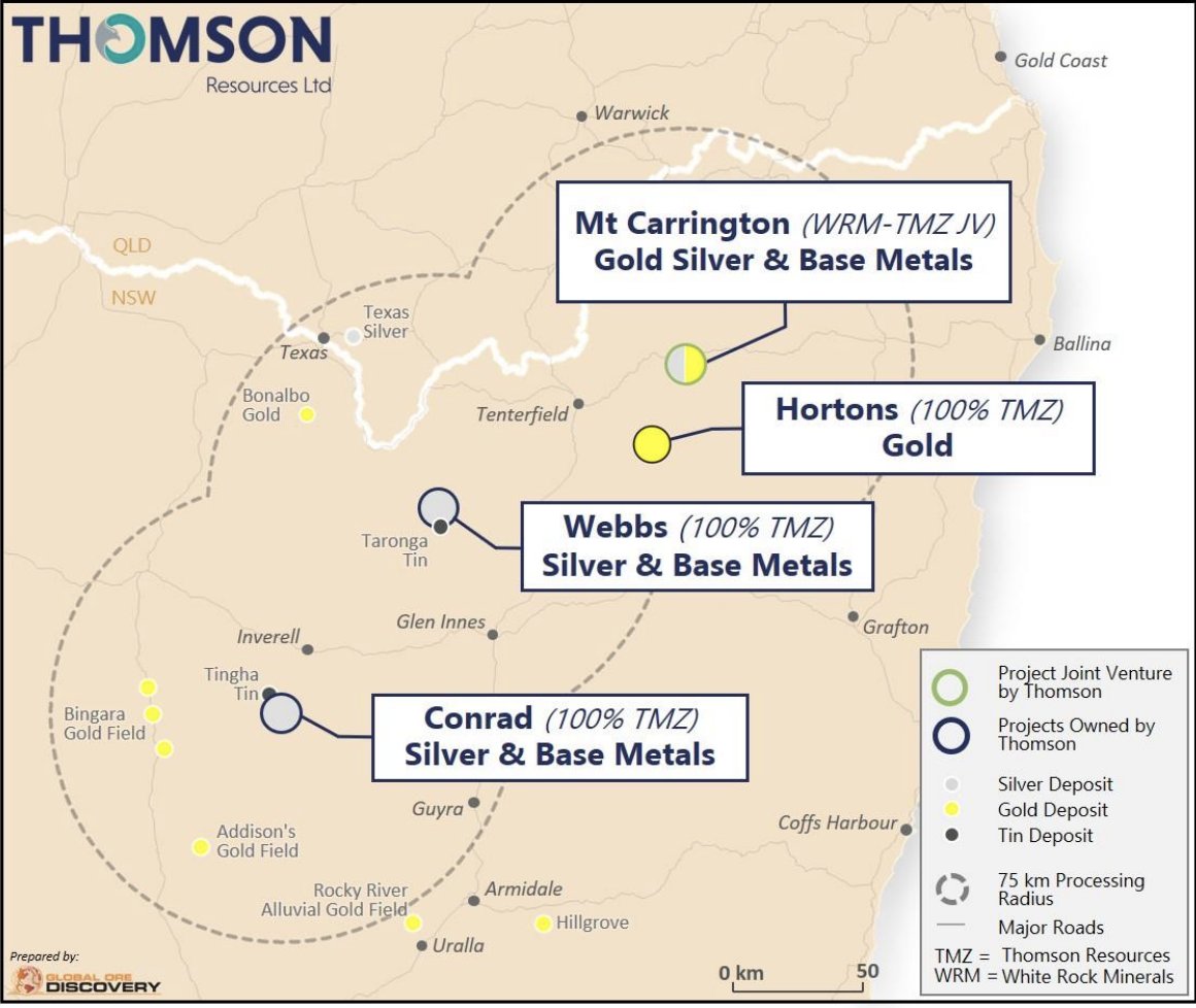 White Rock’s Mt Carrington project, is close to Thomson’s Webbs, Conrad and Hortons projects, which also host significant silver-gold resources.